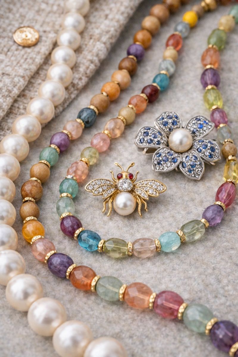 - Brooches are enjoying a resurgence, adding ornamental charm and vintage flair to jackets and accessories.
