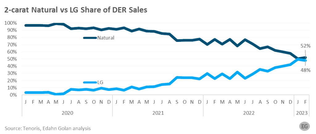 Younger buyers tend to prefer lab grown diamonds due to affordability and sustainability messaging. Traditional buyers still favor natural diamonds for emotional value and long-term worth.